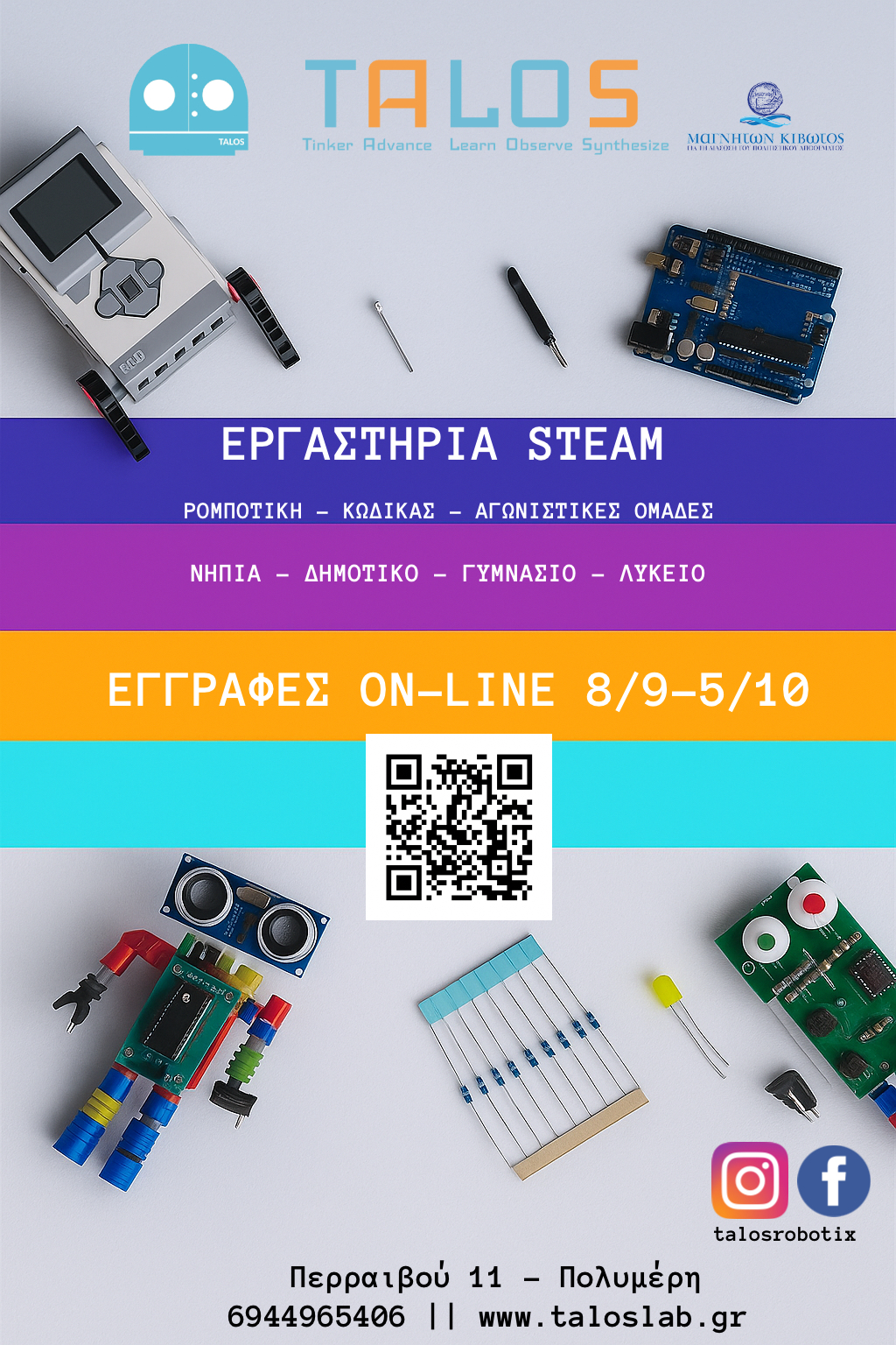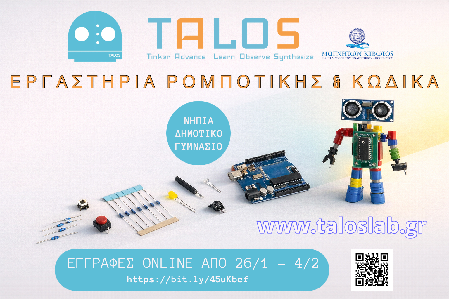 Οι εγγραφές για τα εργαστήρια TALOS 2025 - 2026 θα διαρκέσουν από 8/9 - 5/10